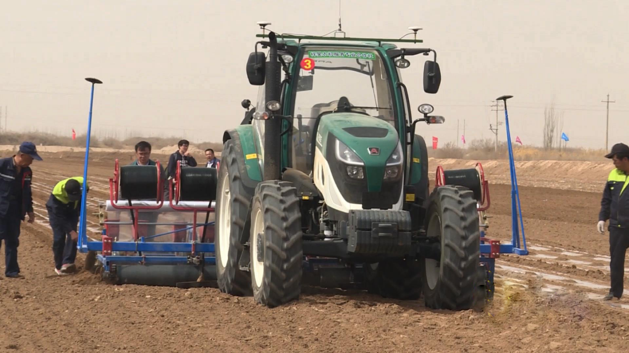 △带北斗导航大型智能机械在自动驾驶状态下作业。