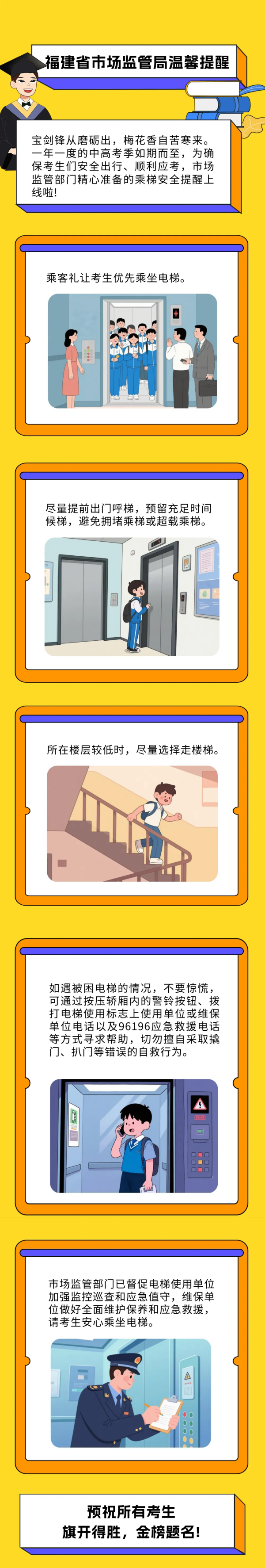 市场监管这份提醒,助考生安全乘梯“赶考”无忧!