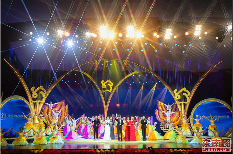 在福建大剧院,电影节开幕晚会以电影对话为主线,串联起中国精神、红色传承、“一带一路”等三大主题。