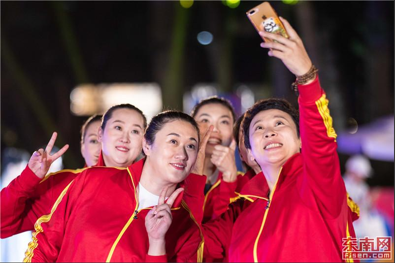15日,中国女排“黄金一代”队员们在开幕式红毯上留影。福建日报记者林熙