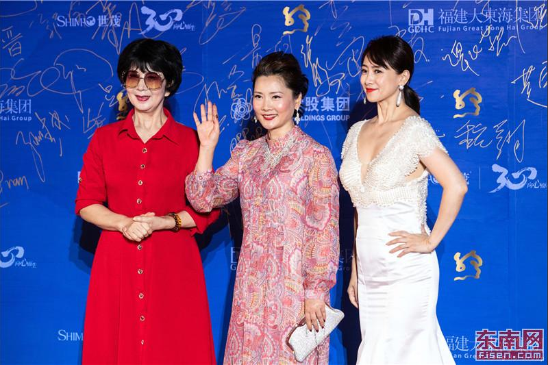 15日,著名演员吴海燕(左)、何赛飞(中)等亮相丝绸之路国际电影节开幕式红毯。福建日报记者林熙